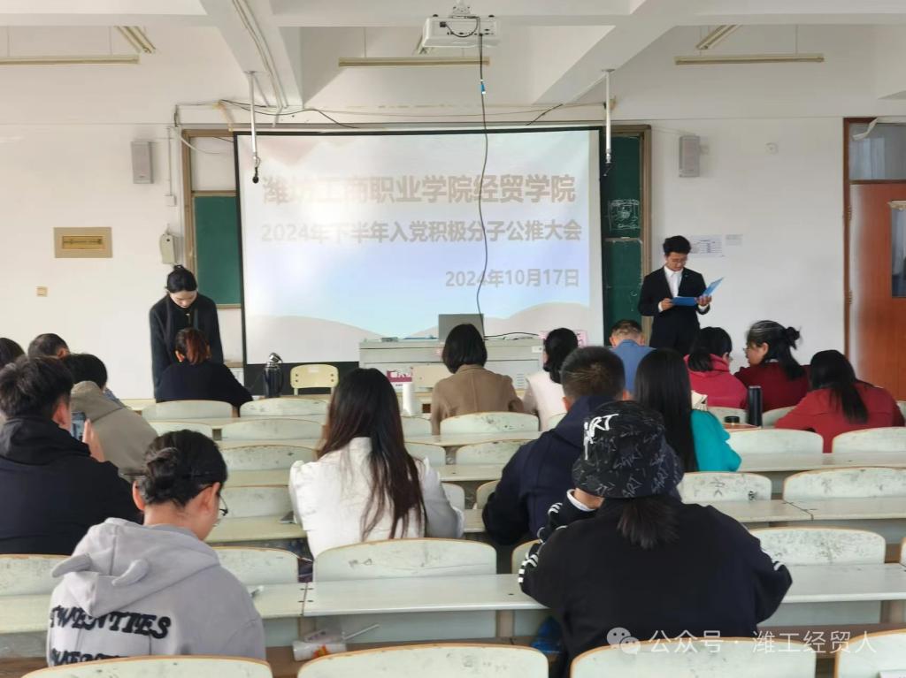 经贸学院于2024年10月17日下午在325教室召开2024下半年入党积极分子公推大会。