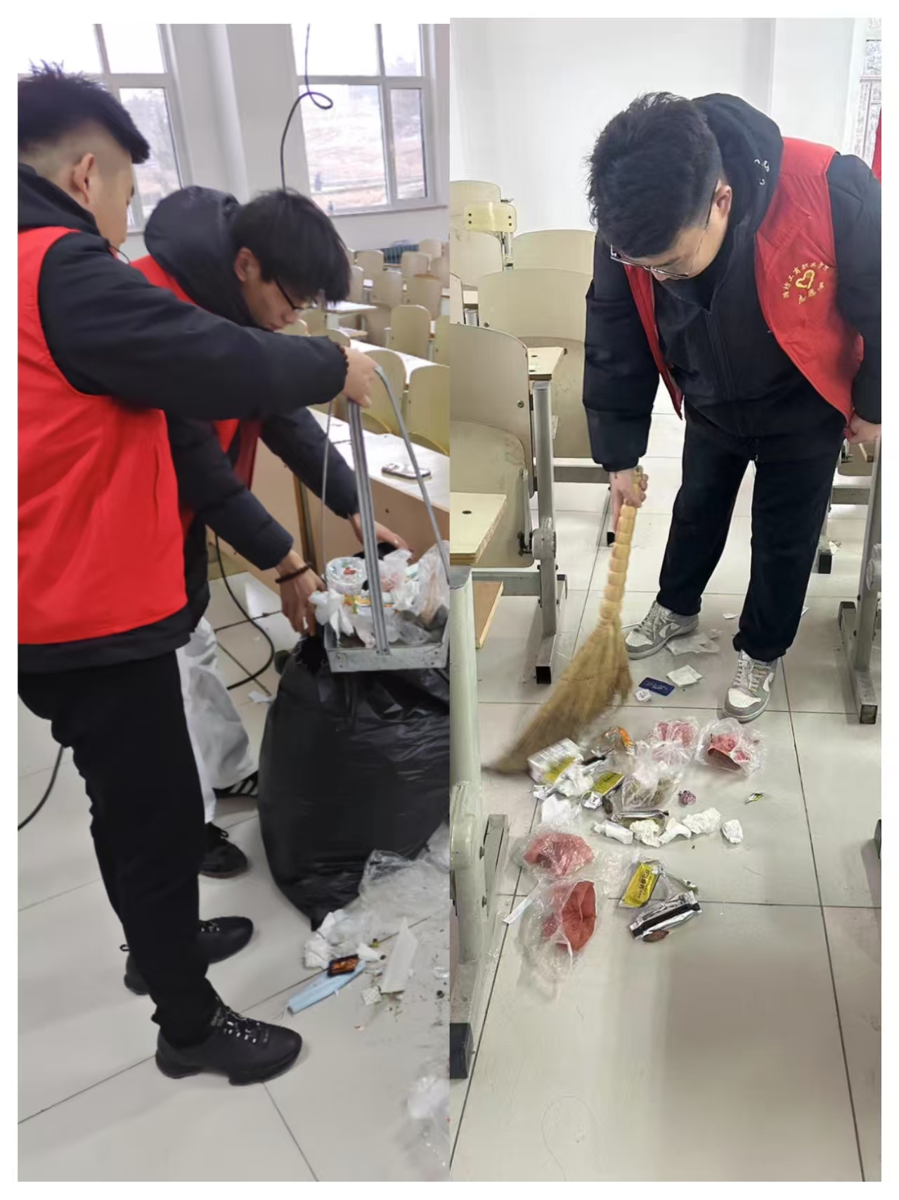 活动发起后,学生热烈响应。迅速组建清扫志愿小组,分工明确、干劲十足,在行动中践行担当奉献精神。大家怀着对校园的热爱和对雷锋精神的敬仰,拿起扫帚奔赴校园各处,一场清扫行动就此展开