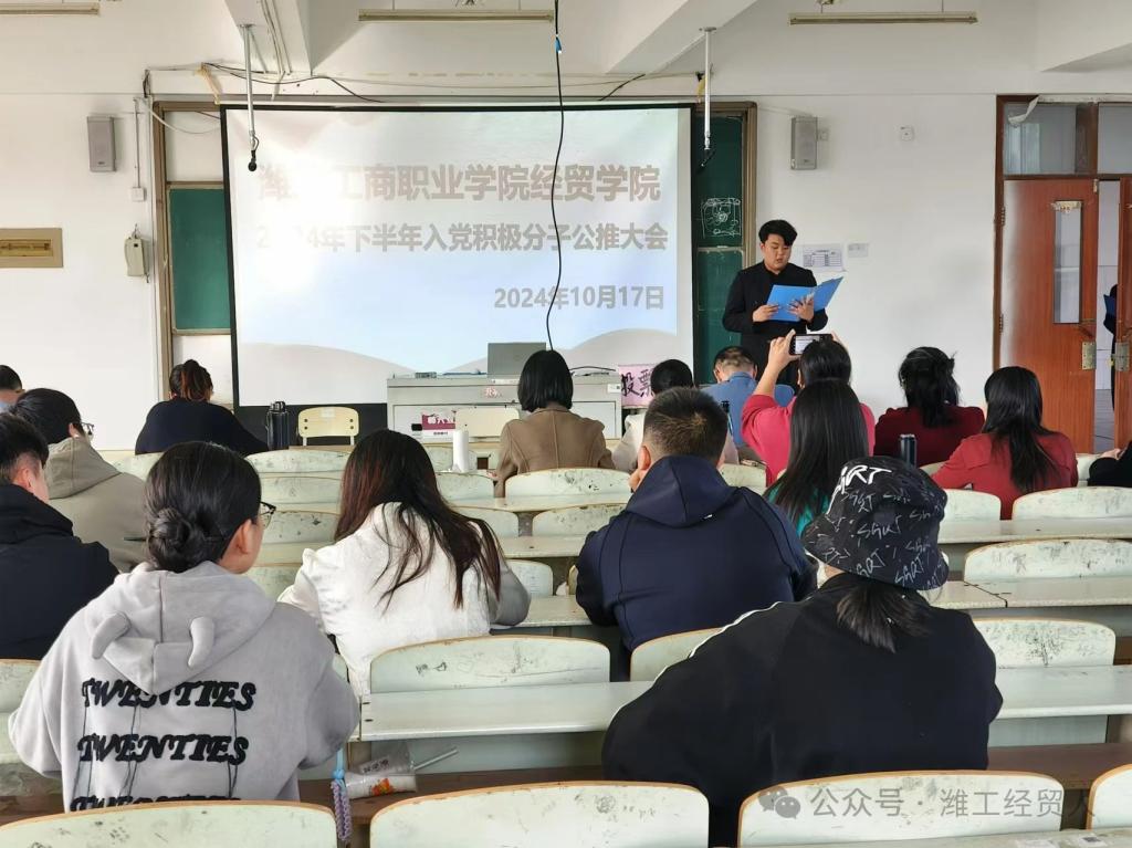 经贸学院于2024年10月17日下午在325教室召开2024下半年入党积极分子公推大会。