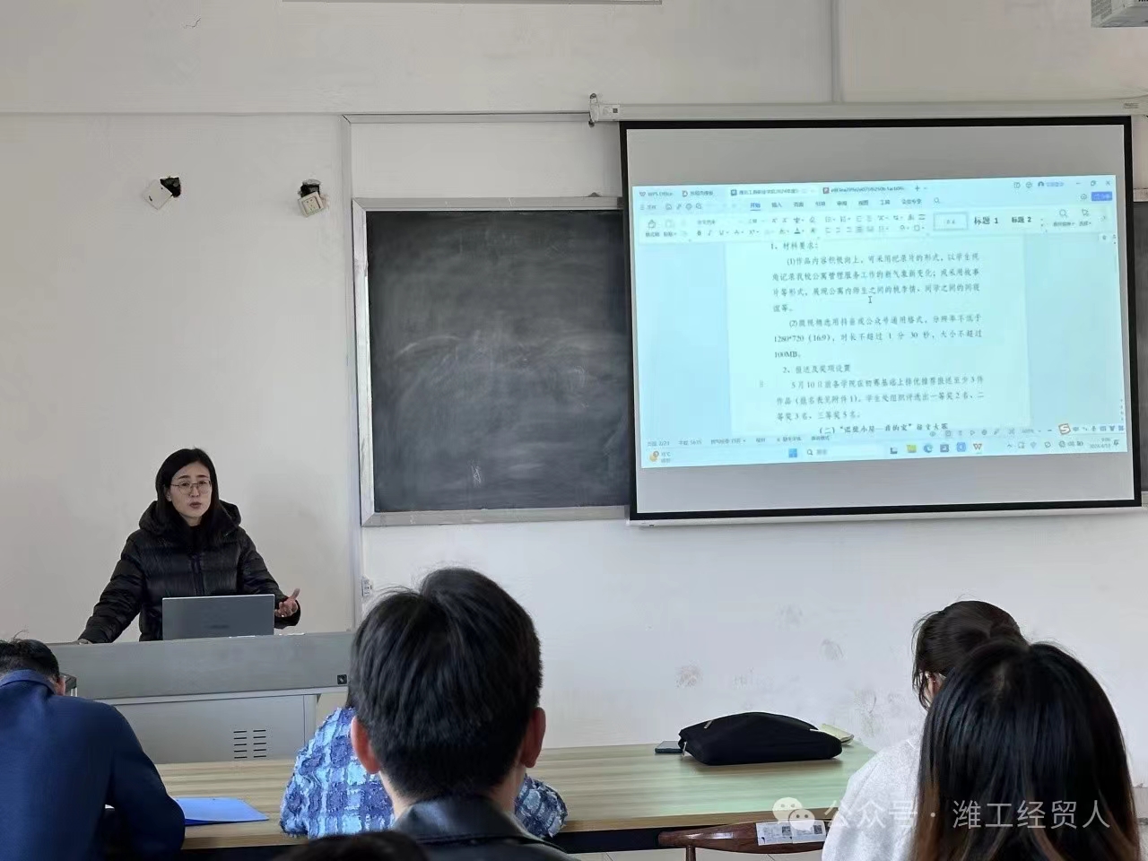 为深入贯彻落实立德树人根本任务,提升大学生公寓文化建设水平, 4月12日上午,经贸学院在尚智楼102教室召开公寓文化节筹备会议,经贸学院党支部书记谢瑞凤,党支部副书记万志峰、团支部书记褚琪、各班辅导员以及学生会骨干成员一起参加了该筹备会。会议由党支部书记谢瑞凤进行总部署。