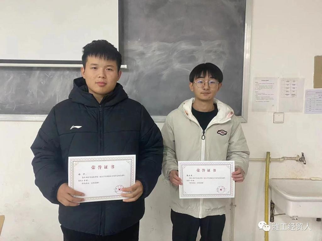 在准备比赛的过程中,经贸学院的黄仁杰和杨宁同学充分利用课余时间查阅和学习大量国家安全知识,认真准备国家安全知识的题目。在比赛过程中发挥“种子”作用,以饱满的状态从容应对考试,取得优秀成绩。