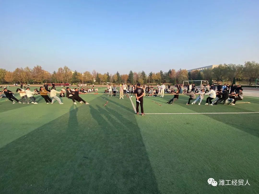 为丰富校园文化生活,营造积极向上、百花齐放、健康文明的校园气氛。经贸学院于2023年10月31日开展拔河比赛。