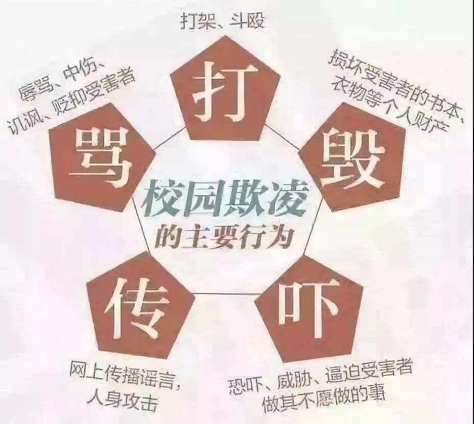 校园欺凌的形式多种多样,不只是伤害他人身体,还有对他人的心理伤害,我们必须重视校园欺凌对受害人的显性伤害和隐形伤害,让我们一起对校园欺凌说不!