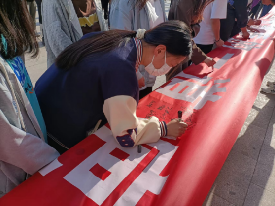 此次活动由学生会主席张崇山同学主持,学生会其他学生组织并协调秩序,严格遵守疫情防控要求,全体商学院学生佩戴口罩、前后间隔安全距离,秩序井然的排队签字、撤离。一个个名字表明了杜绝校园欺凌,从我做起的决心,展示了杜绝校园欺凌,从我做起的雄心。