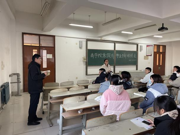 商学院寒假前学生干部培训会于2021年12月17日在尚智楼423会议室召开。商学院院长、党支部书记、团总支书记及全体学生干部参加了此次培训会。会议内容主要是对学生会干部的工作情况以及所存在的问题进行剖析和解决。