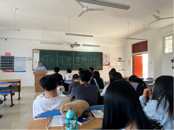 为增强同学们的安全防范意识,提高同学们的安全防范能力,全面普及校园安全常识,5月31日下午商学院19级、20级各班辅导员老师尚文楼教室召开以安全教育为主题的班级会议,安全内容包含:防溺水(严禁在校园水域垂钓、玩耍)、防校园欺凌、宿舍教室安全用电、防诈骗、预防传染病等,同学们积极参与学习。