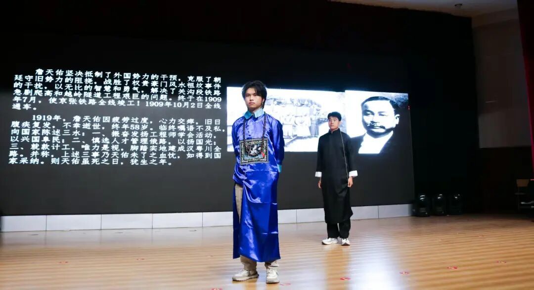 智能信息学院带来的剧目《詹天佑》带我们走进了一位伟大人物的世界。詹天佑用智慧和汗水,在华夏大地上铺就了第一条自主设计建造的铁路,本剧目向观众展现了一位心怀壮志、坚韧不拔的铁路先驱。