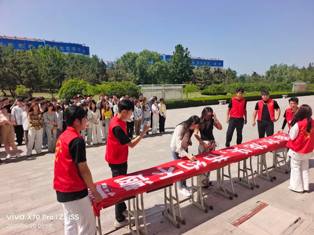组织师生举行节水倡议签字仪式,签名承诺。让签名见证决心,让倡议传播力量。一笔一画写下承诺,一字一句传递决心!