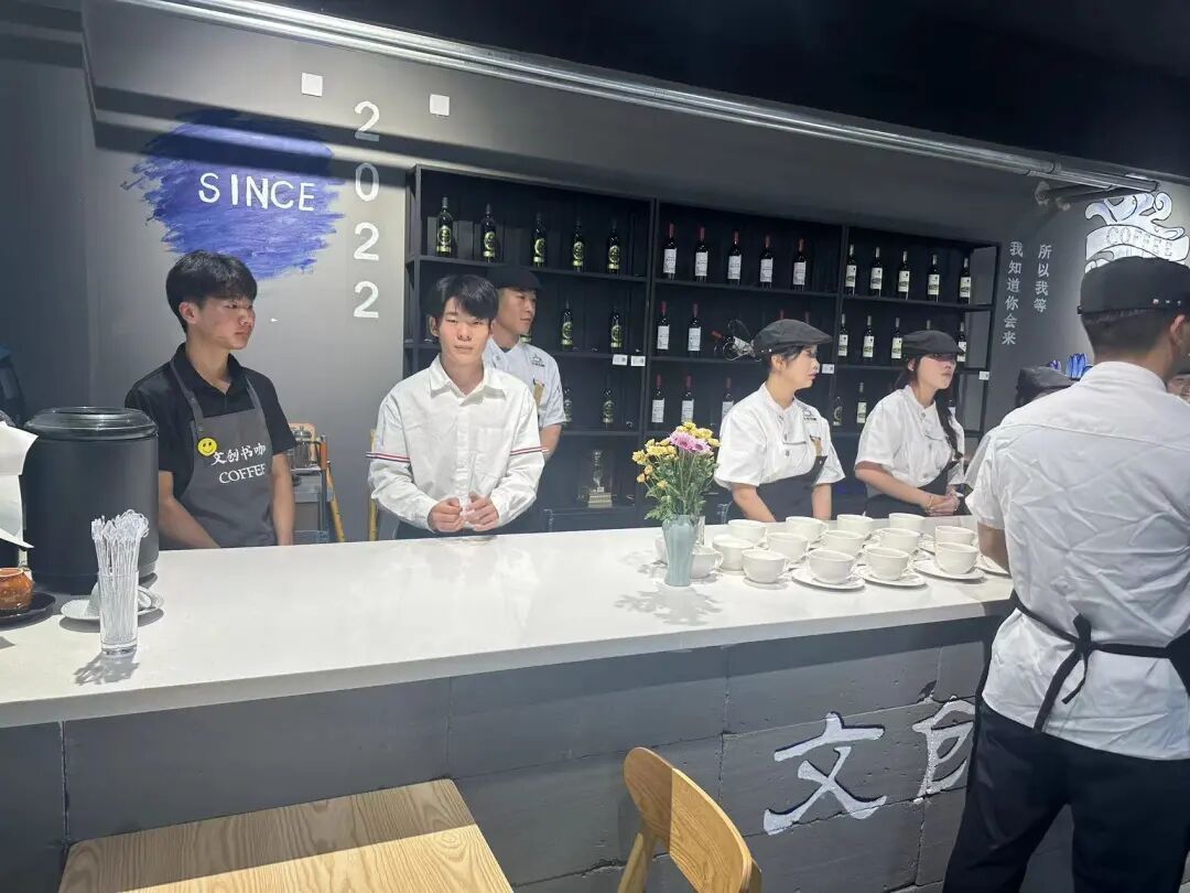 在文创咖啡展区,咖啡机与磨豆机奏响 “舌尖上的交响曲”。从浓缩咖啡的醇厚基底,到美式咖啡的清爽利落,再到拿铁与卡布奇诺的绵密奶香,不同搭配演绎出咖啡世界的千般风味。在这里,师生不仅能品尝到现磨咖啡的醇香,更能感受到专业与生活的巧妙融合 —— 一杯咖啡,既是职业技能的实践成果,也是品味生活的美好媒介。
