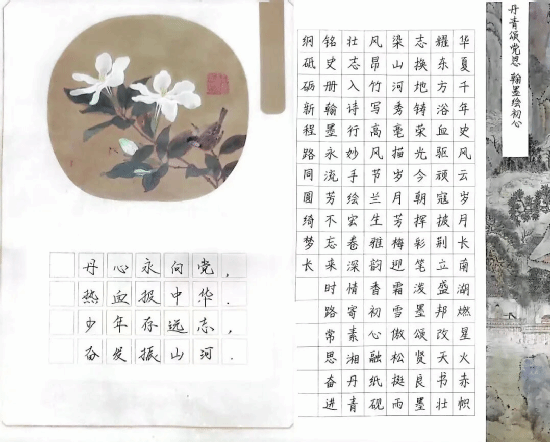 党恩,是寒冬里的暖阳,是暗夜中的灯塔。用硬笔书写,以细腻笔触,记录党恩万千,用规整书写,描绘初心模样,让对党的敬意,在硬笔字里熠熠生辉,青春逢盛世,翰墨颂党恩。
