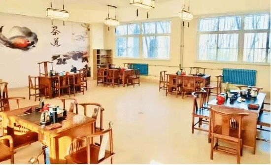 茶艺实训室,用于茶艺及其相关课程学习与实践