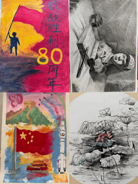 为了纪念中国人民抗日战争暨世界反法西斯战争胜利的重大时刻,增强师生们爱国爱党的决心,我校书画社以“铁笔丹心铸军魂,翰墨流光映盛世”为主题,用硬笔、软笔、绘画三大艺术形式,展开一场心心向党的红色书画大赛。这不仅是一场艺术的盛宴,更是一次精神的礼赞,以笔为桥,连古今强军梦;以墨为媒,映今日盛世光,共同谱写一曲威武雄壮的阅兵赞歌