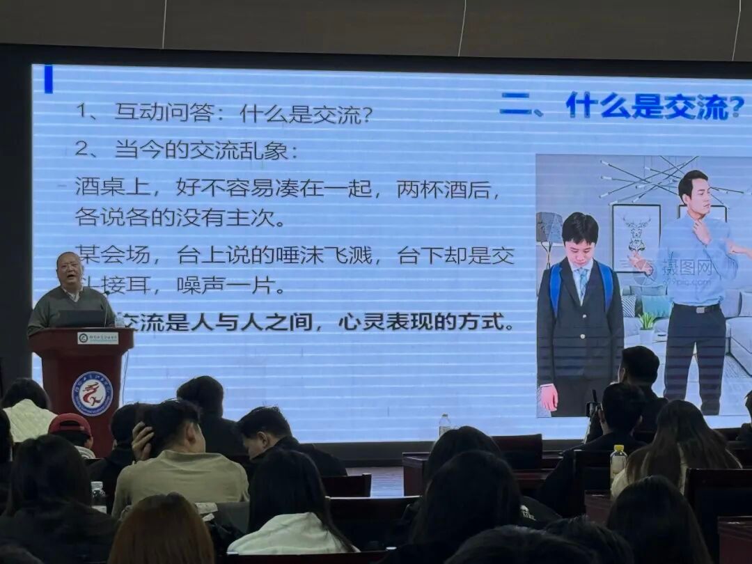 讲座的第二部分聚焦“交流与聆听”。张绪宝指出,交流不仅是人际关系的纽带,更是职业成功的关键能力。他通过生动案例和互动问答,深入浅出地讲解了“聆听”在沟通中的核心作用,并分享了与不同人群沟通的实用技巧,赢得了现场师生的广泛共鸣。