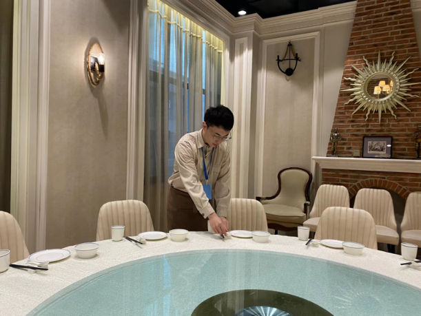 翟国瑞,2018级酒店管理专业毕业生,现任职于青岛崂山湾大酒店餐饮部,获“优秀员工”称号并参与多项政府发布会服务工作。
