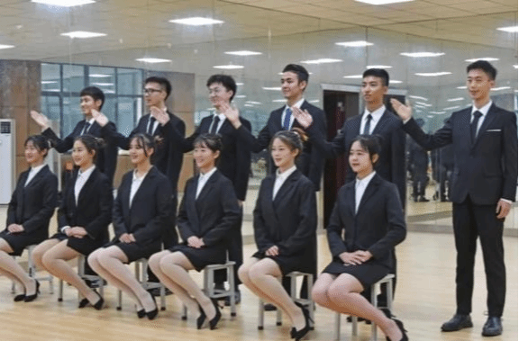 4 学生在实训室进行礼仪培训