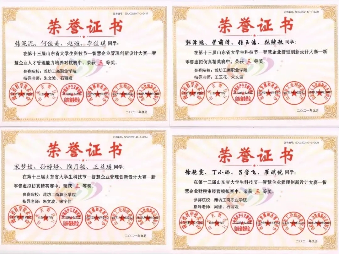 学院教科研水平高,自主开发校本教材8部,拥有山东省优秀教学团队一个、山东省精品课程群一个、山东省职业教育精品资源共享课2门;学院注重学生技能培养,在各级学生技能比赛中获得国家级三等奖2项、省级二等奖6项、省级三等奖若干,是1+X财务共享服务职业技能等级证书、智能财税职业技能等级证书、企业管理咨询职业技能等级证书考核站点。
