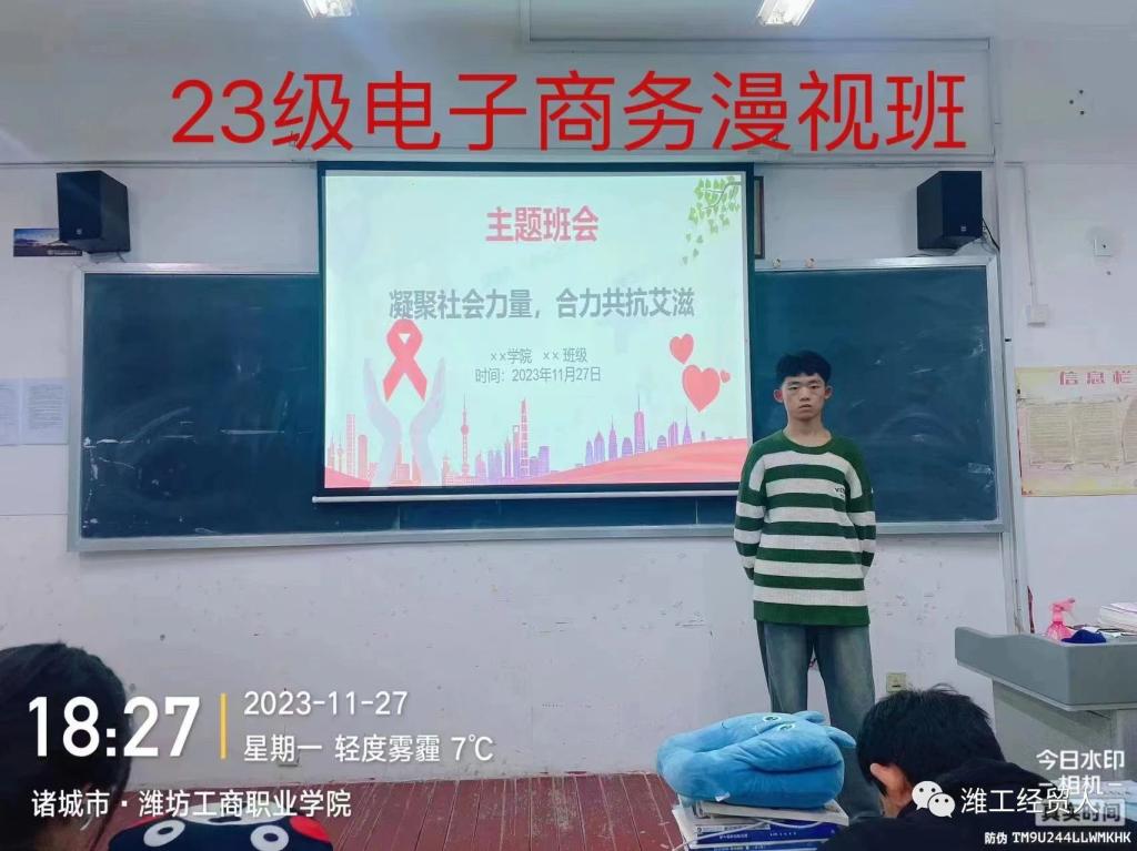 为响应世界艾滋病日的号召,积极参与艾滋病防治工作,同时提高同学们对艾滋病的认知和防范意识,倡导健康的生活方式,增强自我保护意识,减少对艾滋病人的歧视和偏见,并营造和谐的校园环境20231127日下午,潍坊工商职业学院经贸学院举办了防艾主题班会,此次班会意在呼唤大家学会正确地保护自己,唤起同学们对艾滋病毒感染者的同情及理解,呼吁大家关爱他人,共享生命!