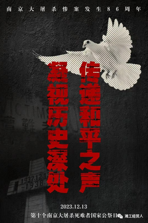 2023年12月13日是第十个南京大屠杀死难者国家公祭日,我们以国之名,祭奠南京大屠杀死难同胞。86年了,我们没有忘记。硝烟已散,历史却不敢忘记。只有捍卫历史的真像,才能守住和平与正义。