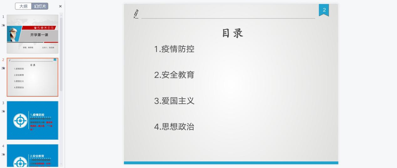 (2)为了更好的传达开学第一课的内涵要义,各辅导员老师也积极准备相关课件,以更好的形式向学生传达。