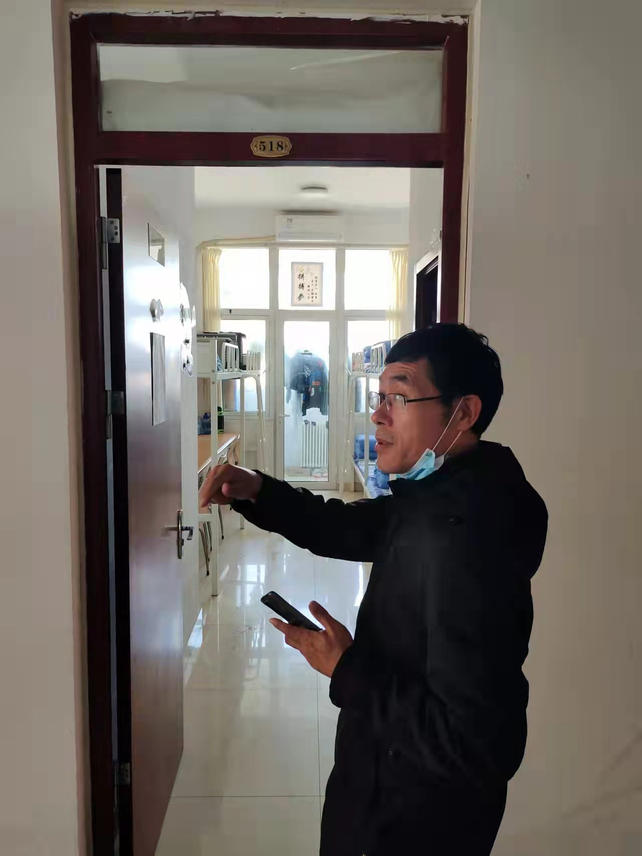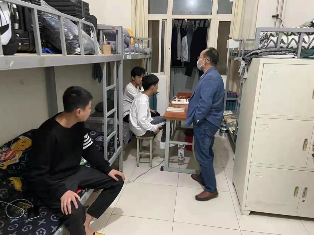 在和美居3号学生公寓楼,任院长随机走访了该楼栋三十余间宿舍,和同学们进行了亲切的交流,深入了解学生的学习与生活情况,尤其是日常生活中遇到的困难和困惑,他希望同学之间要和睦相处,互帮互助,合理支配课余时间。在谈到宿舍安全工作时,任院长指出:宿舍是同学们大学三年共同的家,安全工作不能放松,大家要加强自我防范意识,自觉遵守宿舍各项管理规定,坚决杜绝宿舍内使用明火、违规用电等违纪行为,同时保持室内环境的整洁卫生,注意开窗通风,共同营造安全有序、干净整洁的宿舍生活环境。