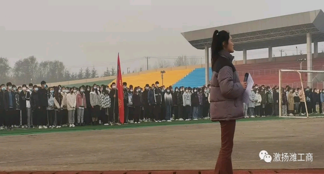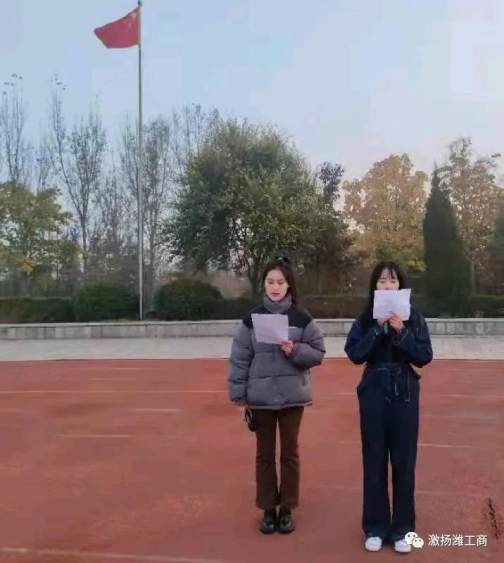 2021级学生代表张雪在国旗下讲话,对“拒绝校园暴力”展开了演讲,号召全体商学院同学要远离校园暴力,争做文明四有学生。