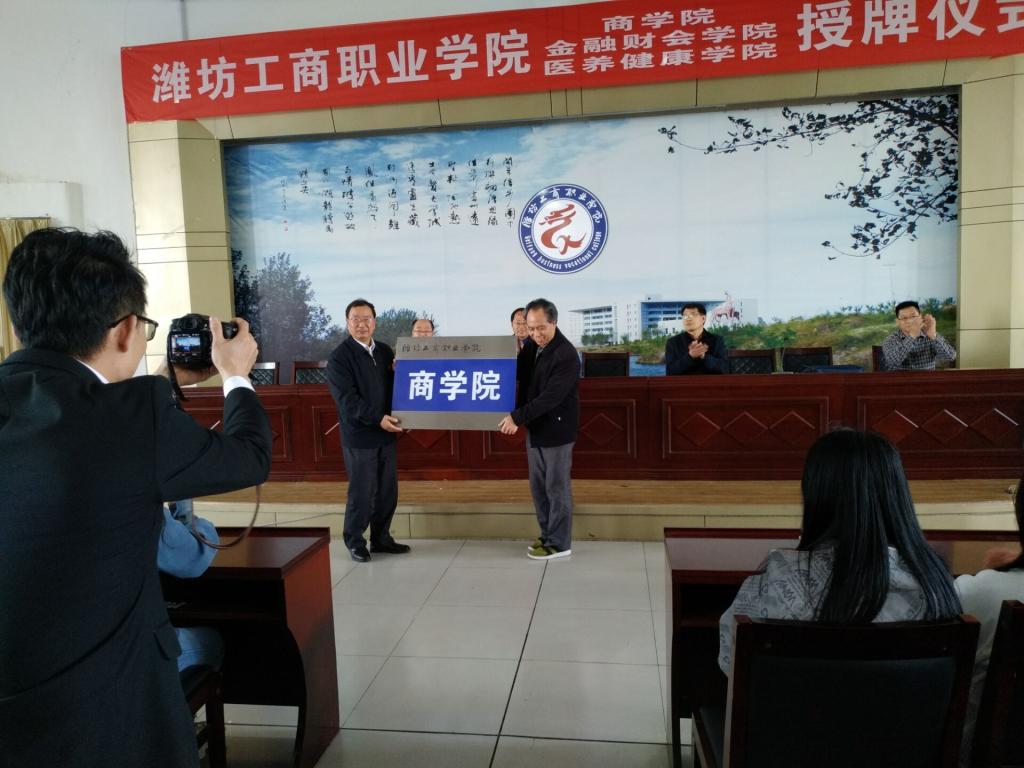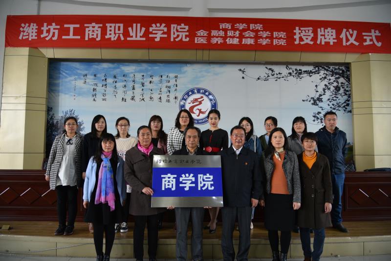 我院于2018年4月24日下午在图书信息楼第二报告厅举行了潍坊工商职业学院商学院授牌仪式。学院院长王传旭,二级学院商学院院长陈玉和以及部分师生代表出席仪式。