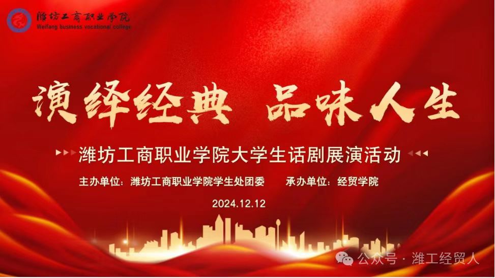近日,由潍坊工商职业学院学生处团委主办经贸学院承办的“演绎经典、品味人生”话剧比赛在学院礼堂成功举办,为学生们提供了一个展示自我、挑战自我的舞台,充分展现了学生们的艺术才华和综合素质。