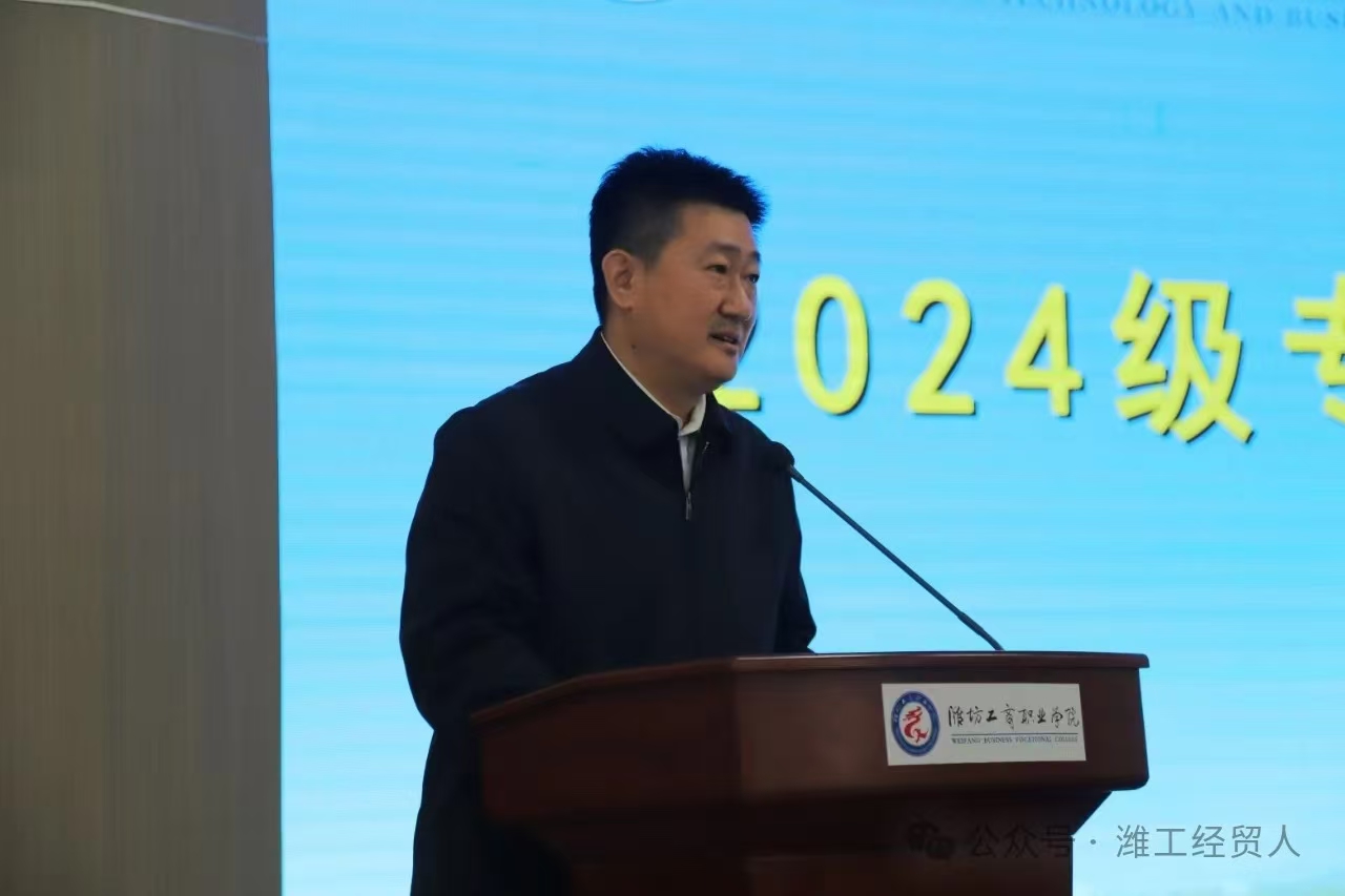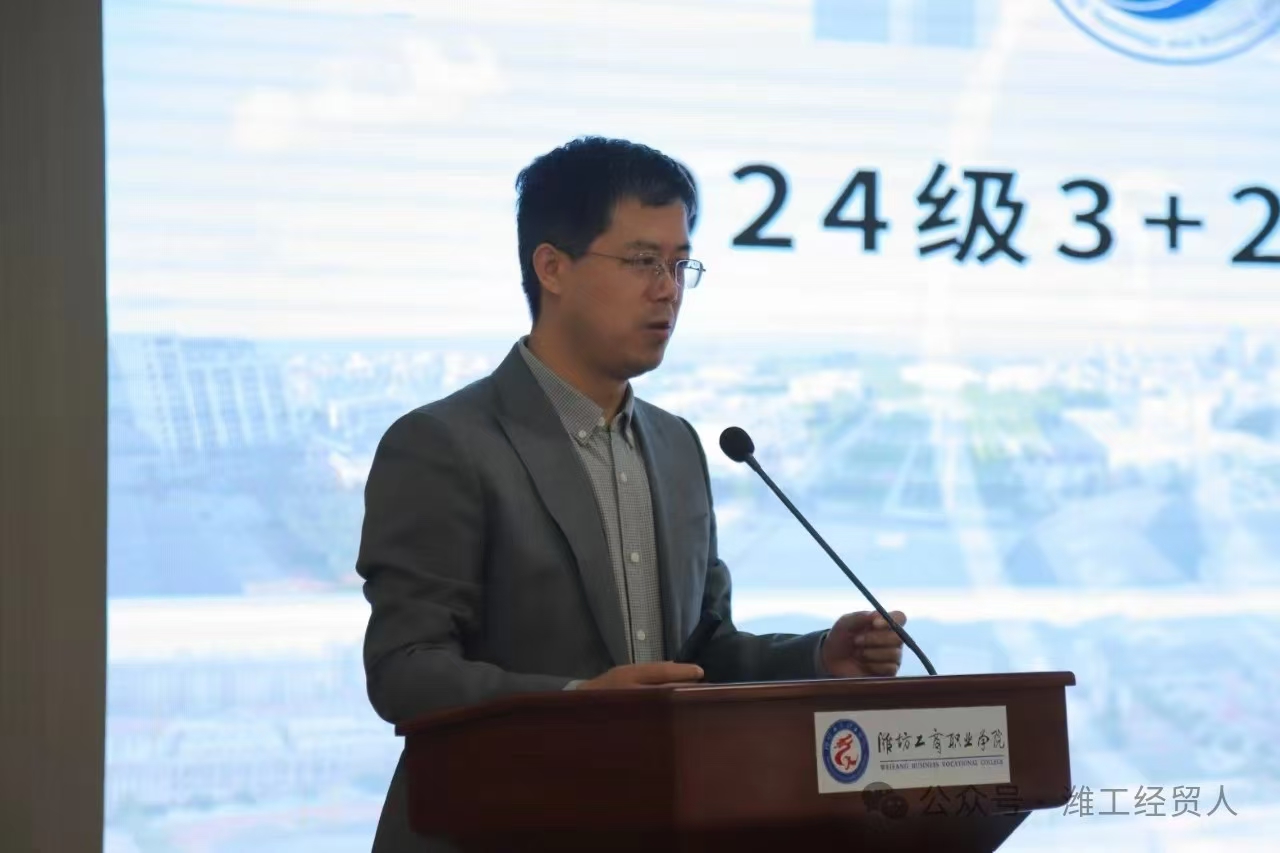 开班仪式由经贸学院任桂忠院长主持,郑志松书记为开班仪式致辞,苗成林院长作报告。苗院长通过播放宣传片及相关资料简要介绍了山东工商学院的基本情况及工商管理学院的发展现状并强调了在专业设置、师资力量、教学设施等方面的优势,同时,苗院长对贯通班的同学们提出了新的要求,鼓励同学们要养成良好的习惯,端正学习态度、明确学习目标,不负青春韶华,不负自我期许,用实际行动书写属于自己的精彩篇章。