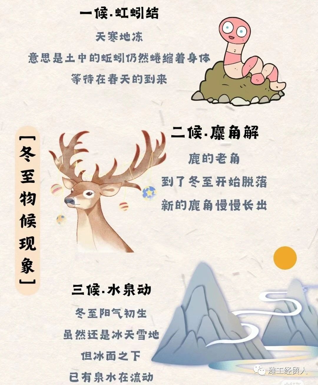 二候麋角解,麋与鹿同科,却阴阳不同,古人认为麋的角朝后生,所以为阴,而冬至一阳生,麋感阴气渐退而解角。