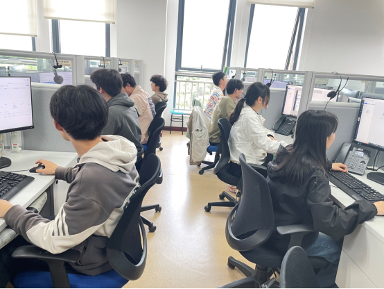 同学们正在认真工作,大家打开电脑,带上耳麦,手持键盘,尽到了一个小客服的责任,公司为了让同学们工作更有干劲,也会给业绩优秀的同学奖励,从而激励其他同学将更多地热情投入到工作中。