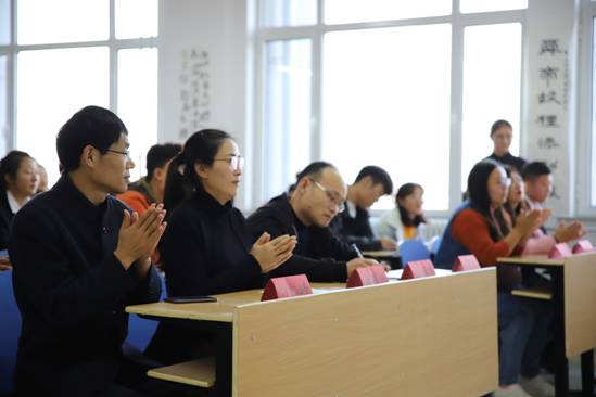 由田露莹宣读济宁高新区诗词楹联学会、任城区诗词楹联学会发来的致辞。