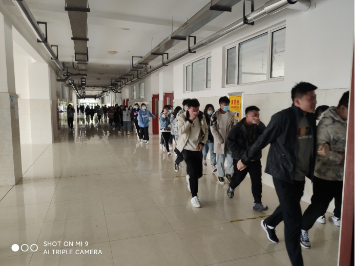 随后随着警报的响起,消防安全演练活动正式开始。全校师生按照制定路线,猫着腰、捂着嘴鼻迅速有序地撤离到操场。全体师生在第一时间安全撤离到学校操场的安全地带,各班清点人数,并向商学院党支部书记报告演习情况。随后商学院党支部谢瑞凤书记对本次演练活动进行了简短的点评和总结,提出改进措施,进一步强调了逃生中应注意的问题。
