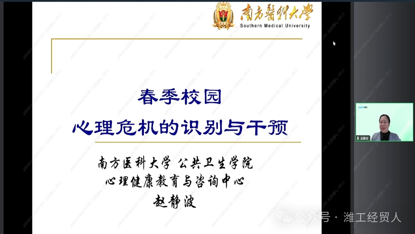 2024年3月6日,我院组织老师们观看了南方医科大学赵静波老师的“校园心理危机识别与干预”公益课程,本次课程让老师们充分了解了校园危机识别流程、不同危机情况程度学生处理措施和不同类型危机问题的干预策略,帮助同学们树立一个正确健康的心理。