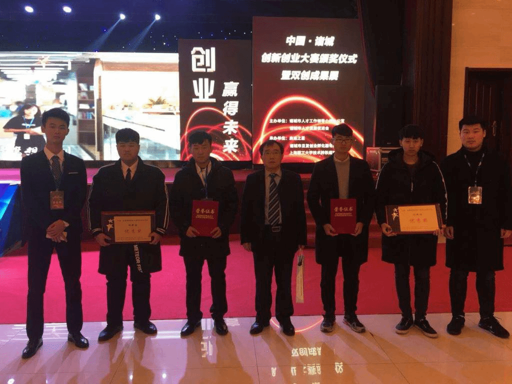 2017年12月15日,中国诸城创新创业大赛落下帷幕,我院工商管理系16级冯建航,史继斌,17级史天赐,张富豪团队和17级杨远航,于聪,范长法团队共七位同学,分别策划“购新鲜”、“城市闪电”两个创新类项目,在崔久波老师的精心指导下,对项目反复修改完善,经历四十多天的培训,克服种种困难,面对100多强手如林的落地公司参赛团队,我院两支团队最终杀入决赛,并在决赛中面对北京、上海等上市公司以及无人机、VR、3D打印、新能源等项目,两支团队最终获得优秀奖的好成绩,并获得5000元的政府创业资金扶持。