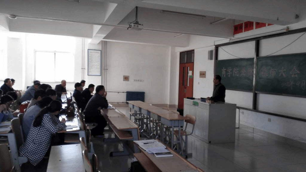 2018年4月19日下午在326合堂教室,商学院以“教学建设年”为主题,围绕教师培养和学生工作的主线展开了会议讨论。商学院院长陈玉和、副院长尚芳、党支部书记王培周等领导和全体教师参加了会议。