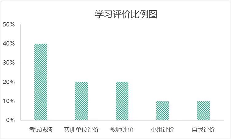 采取学生自我评价、小组评价、教师评价及实习单位评价相结合的方式,综 合评价学生的学习情况。