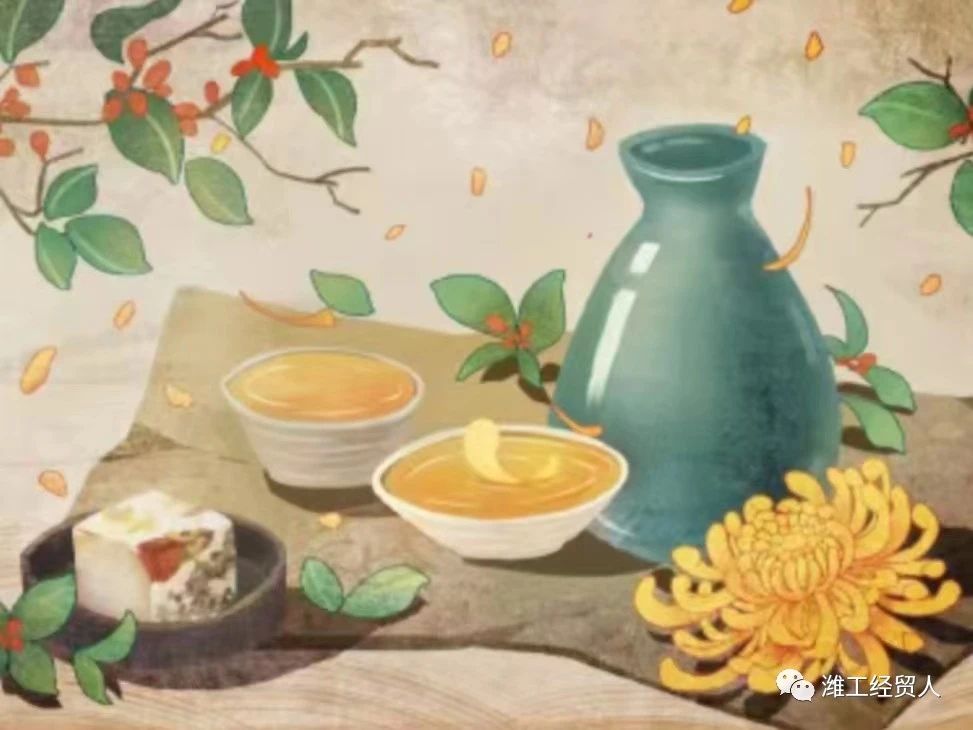 时值深秋,天高气爽,粮米归仓,又逢重九,人们在这一日会登高望远,饮酒赏菊,佩戴茱萸。葛洪在《西京杂记》中记汉高祖时,每逢九月九日,宫中要佩莱莫,食蓬饵,饮菊花酒,以求长寿。九九与“久久”谐音,因此,从汉朝起有了重阳之日祈求长寿的风俗。“九月九,九重阳,菊花做酒满缸香。赏菊、咏菊是重阳节里的重要内容,重阳节还有文人节之称。古代的文人墨客在这天留下众多的美丽诗篇,以寄托对故人的思念。