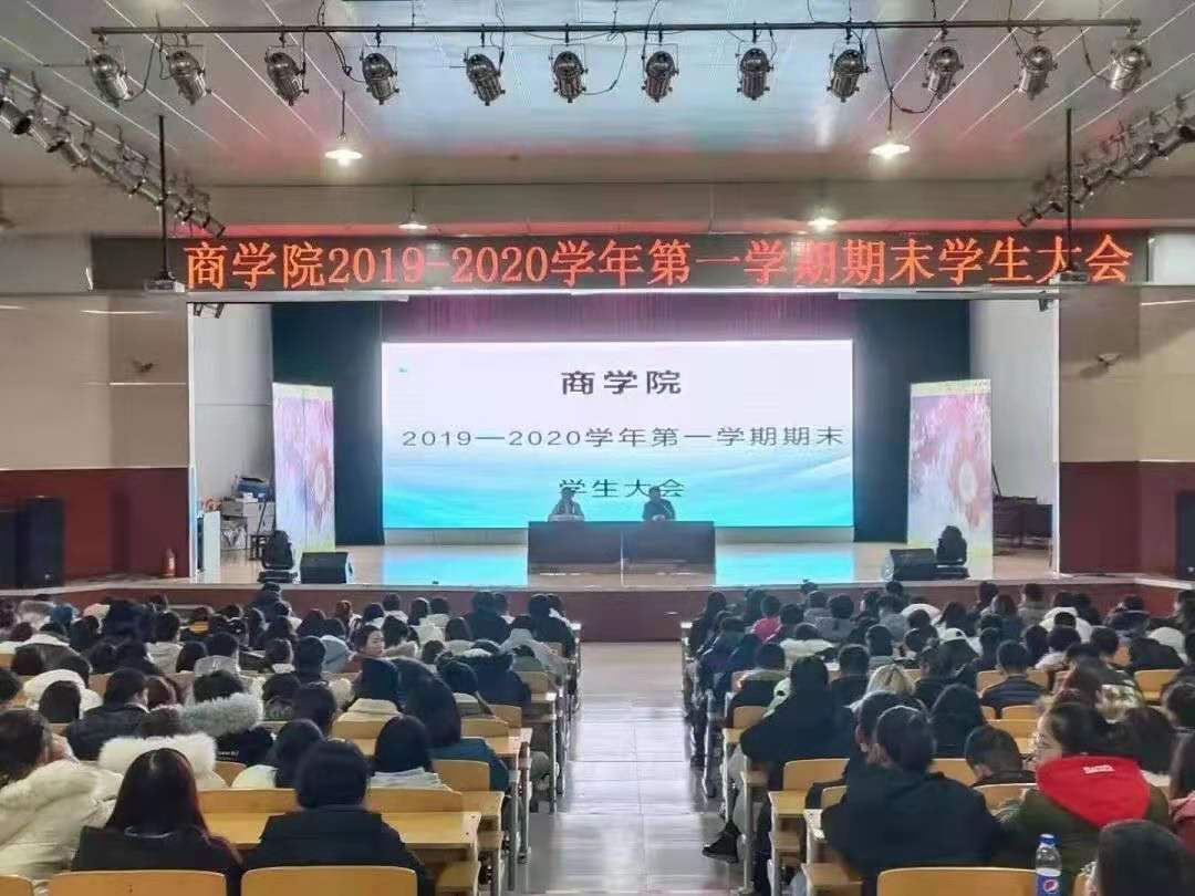 2019年12月17日下午4时,商学院2019-2020学年第一学期期末学生大会在图书信息楼第一报告厅正式召开。此次学生大会由全体商学院在校生共同参加的会议,对全院学生进行了年度的总结和未来规划。本次会议由任桂忠院长和谢瑞凤书记共同主持。本次会议开始,书记宣布了各级学生放假及开学时间,对学生离校和返校进行了具体部署安排和安全要求。接着,主要针对提高学生安全危机意识和自我能力的培养展开一系列讲话,谢书记提醒广大学生,要严防校园贷,小心电信诈骗,谨慎身边的诈骗陷阱,遇到问题多与辅导员老师沟通。谢书记还鼓励我们,寒假期间要多去进行社会实践活动,主动充实自我,锻炼自我,从而获得人生启迪。任院长则从马上要进行的期末考试主题切入,强调诚信考试,动员学生树立目标意识,自主制定学习计划,鼓励同学要学会学习,努力学习,力争上游,语气振奋人心。同时任院长给予学生充分信任,让学生树立信心,正确认识自我。院长耐心的向同学们讲解文化知识对于未来的重要性,并引用实例,言传身教,引发了在座学生的思考,得到了同学们的一致认可。随着任院长激情的讲话落下帷幕,会议圆满结束。