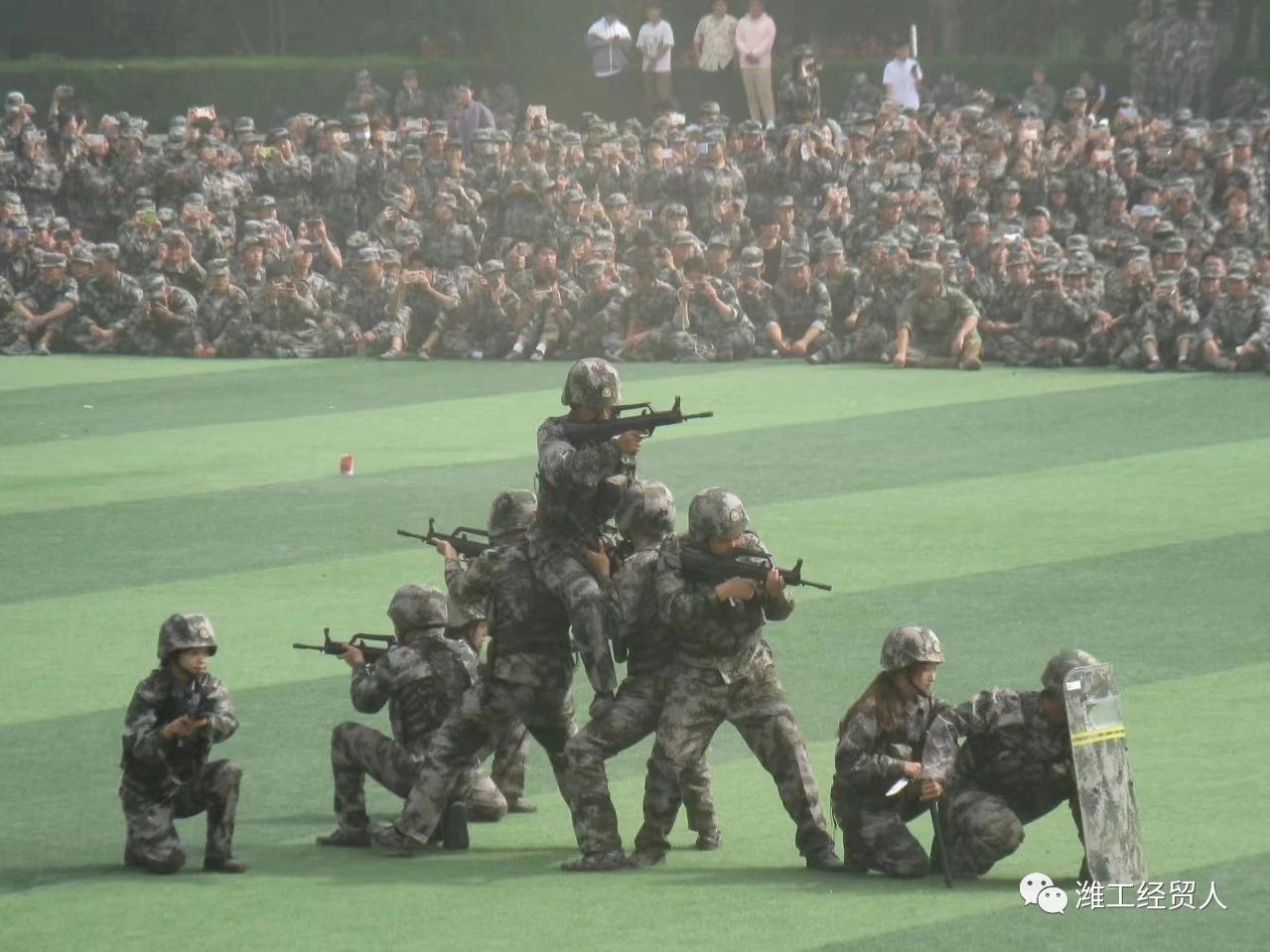 经贸学院2023级新生在骄阳下撒热血、在细雨蒙蒙中铸军魂,在万里晴空中展英姿。