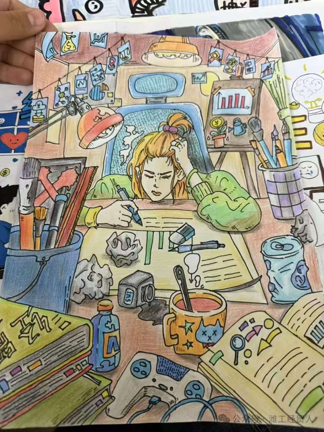 这场绘画比赛把“心灵”和“财智人生”结合,给同学们一个用色彩讲故事的舞台。大家的作品风格各异,有的同学用明亮色块描绘出对未来财富的憧憬;有的则用细腻线条勾勒出日常理财与心灵成长的紧密联系。在一笔一划、一抹一彩中,大家把对心理健康和财富认知的独特理解展现出来。
