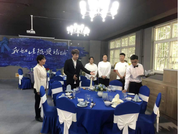 依据《职业学校学生实习管理规定》、《关于深化产教融合的若干意见》以及《国家职业教育改革实施方案》等政策,经贸学院响应学校打造“3+5”亮点工程,突出“一院一品牌、一楼一特色”,重点打造了“文创书咖实训室”,集调酒、宴会设计、导游业务、咖啡服务等一体,用于精品旅游专业群各专业课的理论和实践教学。“文创书咖实训室”将“双创”理念融入到专业课程中,强调以企业经营的思想来运行实训室,并对校内师生开放,成为了一个校内生产性实践场所。并在职教周活动和嘉宾参观指导中,全方位展示了经贸学院精品旅游专业群的教学成果和学生的技能风采。