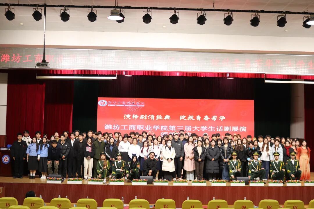 12月3日下午,由潍坊工商职业学院学生处团委主办,经贸学院承办的"演绎剧情经典 绽放青春芳华”第三届大学生话剧展演活动在第一报告厅成功举办。学校学生处处长 团委书记柴元昌,经贸学院党支部书记谢瑞凤及各二级学院的评委老师莅临此次展演活动现场。