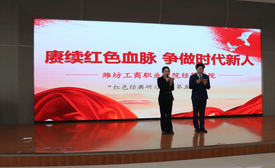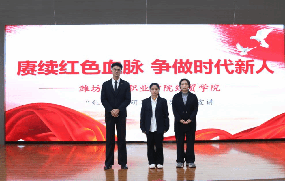 岁月长河,风云激荡,红色基因,薪火相传。回望峥嵘岁月,无数革命先辈用热血与生命铸就了不朽丰碑。立足新时代,我们更应铭记历史、传承精神。2026年4月2日下午,潍坊工商职业学院“红色经典研习社”第五期宣讲活动在第二报告厅开展,我们以宣讲为纽带,重温红色记忆,感悟信仰力量,让革命精神在青春中绽放光芒。